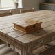 Made from knotty pine, the engraved top is select pine to minimize imperfections. The top measures 14" x 11" whole the spacious lined interior measures